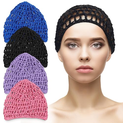 4 Pcs Hair Nets for Sleeping – Crochet Hair Net Cap for Wrapping Hair Snoods for Women Hair Nets for Women Sleeping Hair Wrap Net for Silk Press Mesh Hair Net for Sleeping – Crochet Net Cap for Hair Buy Cheap For Nice