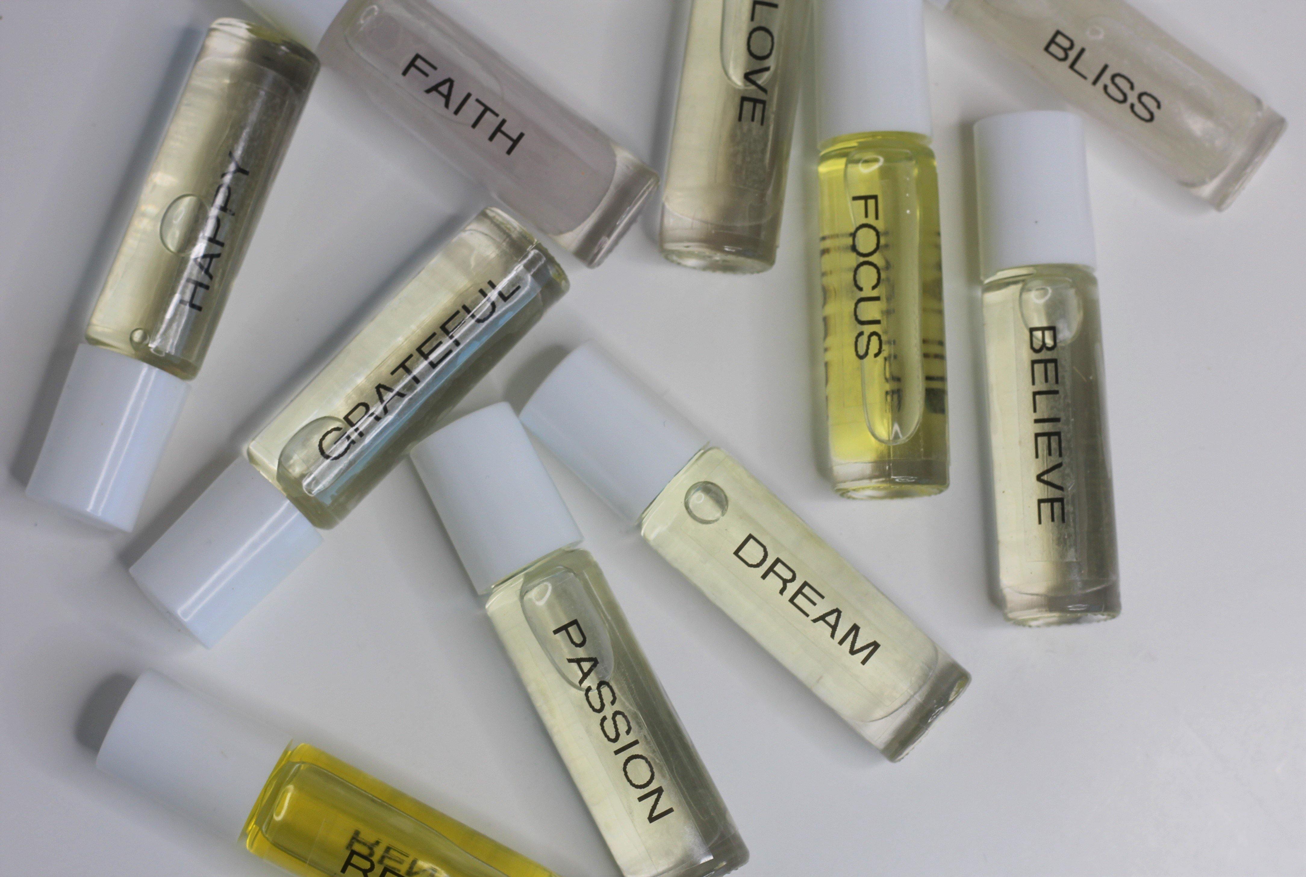 Affirmation Roll-Ons help promote peace and serenity focusing on the very word each roll-on has inscribed. The unique blend of fragrances help to release self-limiting beliefs, encourage inner joy, promote confidence and establish self love. Simple open and roll-on while focusing on the Affirmation Word you are affirming your intension on. Carry this Affirmation Roll-On Fragrance Oil with you everywhere you go so you may receive these affirmations throughout the day. Also a great gift for loved ones.