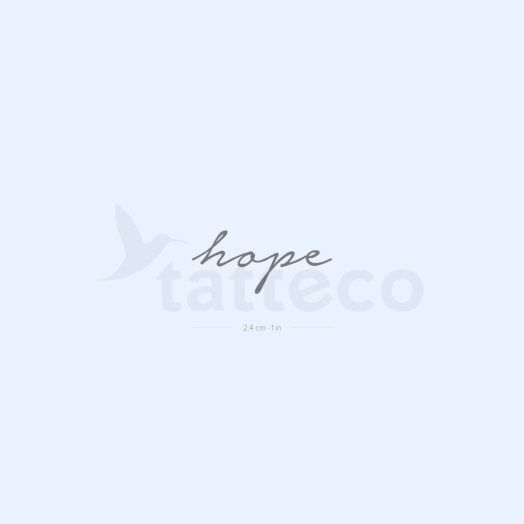 Our handwritten ‘hope’ long-lasting temporary tattoo describes a feeling of optimistic desire. When we hope for something, we typically want it to happen and believe it is possible. For example, we might hope for healing or financial stability. Hope can also be used more broadly to refer to a general sense of well-being. In this case, we might hope for a better future or a life free from suffering.