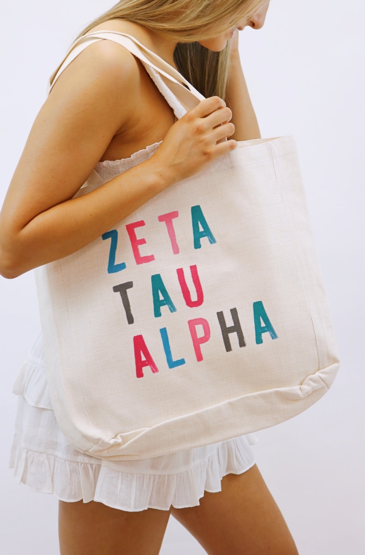 The cutest tote to show off your letters! Each bag varies in color depending on sorority.
