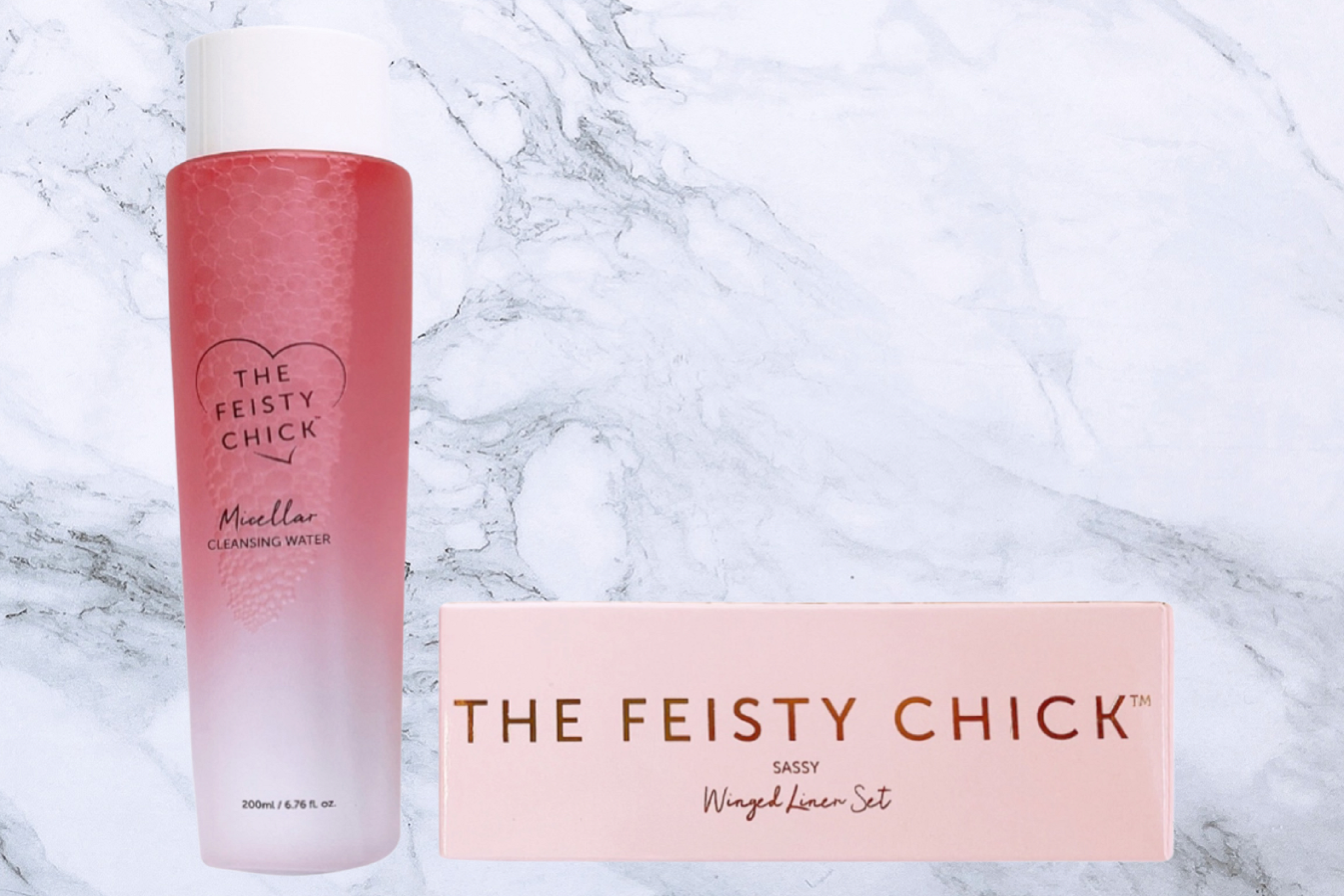The Feisty Chick Micellar Cleansing Water, infused with plant and fruit extracts, gently cleanses and removes makeup on the face, eyes and lips.