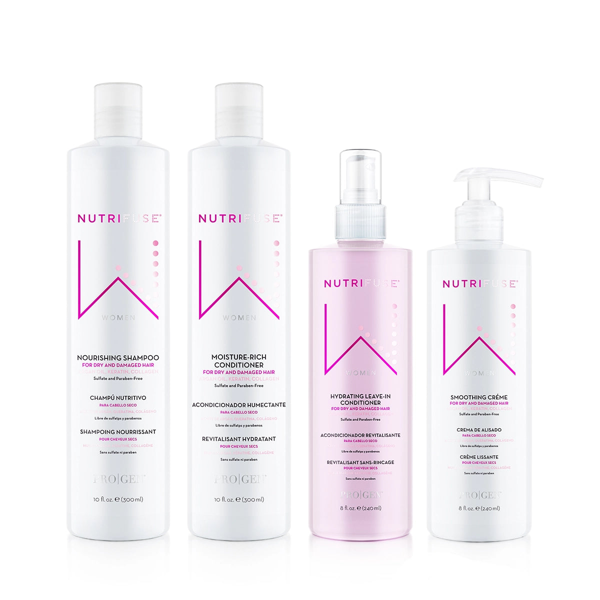 Nourishing Shampoo, Moisture-Rich Conditioner, Hydrating Leave-In Conditioner, and Smoothing Crème.